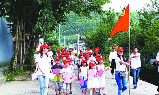 炎炎夏日,浙江理工大学建筑工程学院暑期社会实践团队成员,带领夏令营小朋友参加了浙江丽水市景宁县的“洁净大漈”活动。浙江理工大学 柳晓和/摄