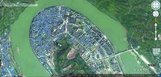 重庆江津,江水环抱的“几”江半岛上如今楼盘林立。图为2015年卫星图。