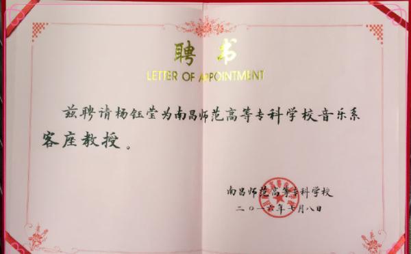 根据杨钰莹上述微博配发的照片显示,杨钰莹已受聘为南昌师范高等专科学校音乐系客座教授,受聘时间为2016年7月8日。