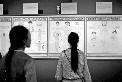 此次展出之后,这部巨幅《四部医典》曼唐长卷将入藏国博,这也将成为唯一在藏区以外博物馆收藏的完整版本。国博负责人介绍,藏医药申报联合国人类非物质文化遗产代表作名录的工作正在进行。摄影/本报记者 魏彤