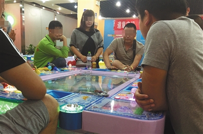 6月28日,回龙观西大街某游戏机厅,几名男子正坐在捕鱼机前,每把输赢至少数千块。 新京报记者 彭子洋 摄