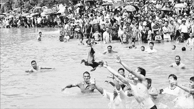 7月11日,广西融水苗族自治县红水乡振民村举办第八届“放鱼节”活动,开展放鱼、捉鱼比赛、女子拔河比赛、捉鸭比赛,吸引数万苗胞参加。