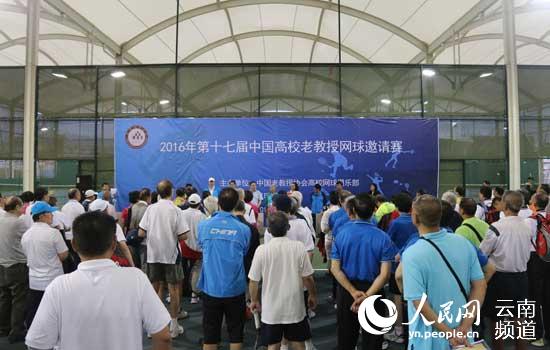 人民网昆明7月12日电 (李发兴)7月11日上午,由中国老教授协会高校网球俱乐部主办、昆明理工大学承办的第十七届中国高校老教授网球邀请赛在昆明理工大学开幕。全国各地参赛的十支代表队运动员、比赛裁判员等200余人参加了开幕式。