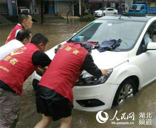 志愿者周文厚介绍,暴雨期间,城区渍水严重,仙桃市百成爱心服务社志愿者在城区各个岗亭路口疏导交通,路口守护井盖,引导市民过马路,帮助车主推车……赢得一致称赞。