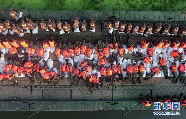 7月12日清晨,奋战了一夜的部队官兵在浮桥上休息。当日8时多,经过近两天的抢险封堵,湖南华容新华垸溃口成功合龙。在这一场抗洪攻坚战中,冲在最前线的是抢险部队的官兵,他们日夜奋战,用钢铁之躯抵御洪流,保护着一方百姓的生命财产安全。新华社记者李尕摄