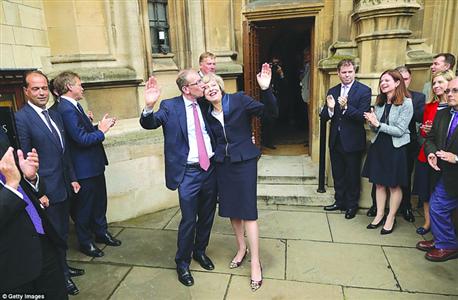 7月11日,特雷莎·梅即将出任英国首相,欣喜若狂与丈夫秀恩爱。