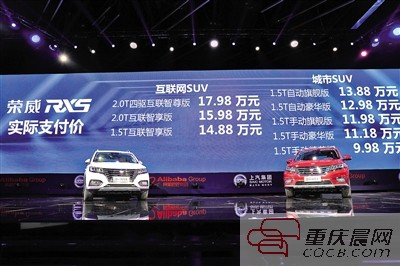 本报讯 (记者 张亮)近日,上汽荣威RX5车型正式上市,新车搭载1.5T和2.0T两款发动机,共有8款车型可选,售价区间为9.98万—18.68万元。