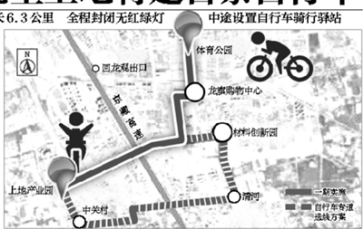目前,昌平区已经基本确定将先建设从回龙观到上地这段6.3公里的自行车“高速”路线,为居民选择新的通勤方式创造条件。下一步,市规划院将开始协调昌平、海淀两区进一步研究项目如何落地。图示制作/王慧![]()