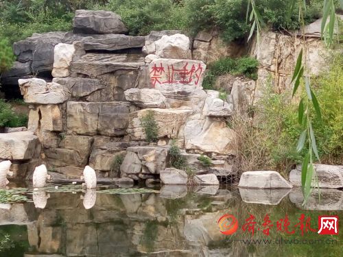 马三坡森林公园南海景点景观石被红漆喷涂禁止垂钓 记者 孟燕摄
