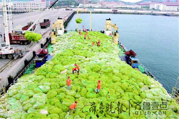 “海状元”2号在码头卸载浒苔。齐鲁晚报·齐鲁壹点 记者 吕璐 摄