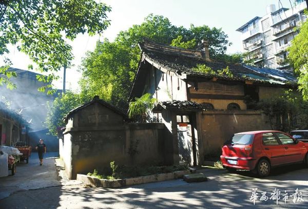 从包家巷进入,沿着几米宽的小道进去,记者找到了谢无圻公馆旧址。老建筑外有一道2米左右高的围墙,电线杂乱垂挂在围墙上,前后两棵5米多高的大树,挡住了光线。公馆的柱子保存完好,朱红色的漆在阳光下尤其醒目,飞檐上的雕花依然清晰可见。