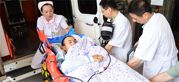 “回家了。”赴南苏丹维和步兵营遇袭战士霍亚会看着救护车上的仪器,心情久久不能平静。张永进 摄