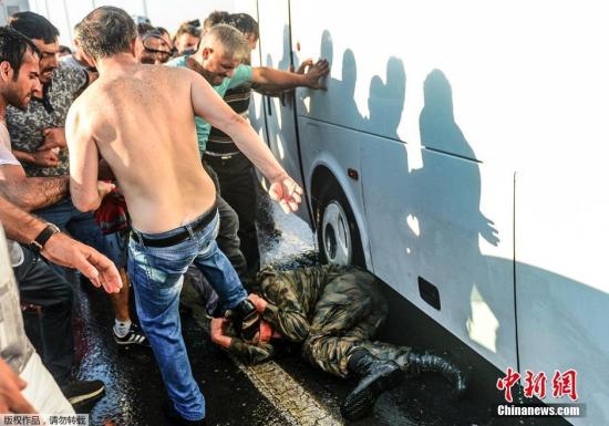 7月17日消息,当地时间7月16日,土耳其政府宣布挫败由部分军方人士发动的军事政变,2800多名军人因涉嫌参与政变遭逮捕。土耳其总理称,情况已经“完全得到控制”。此次政变造成了严重伤亡。图为叛军士兵投降后遭到民众的暴打。