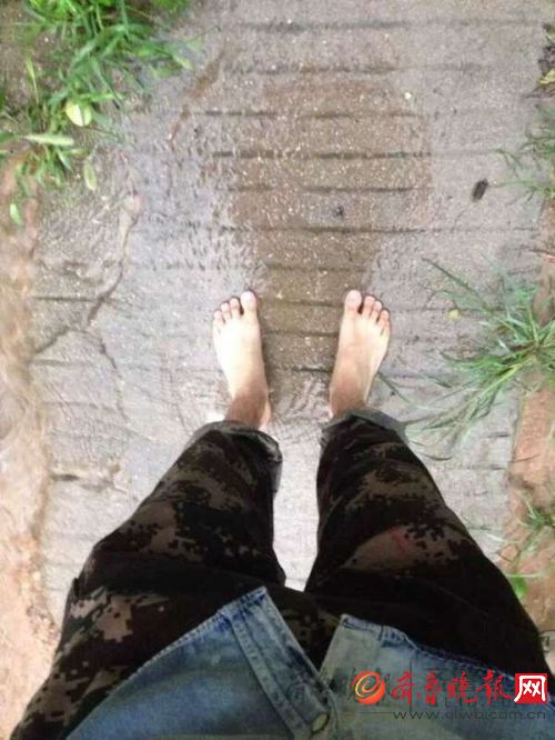 玉泉寺景区工作人员巡查中,鞋冲跑了。