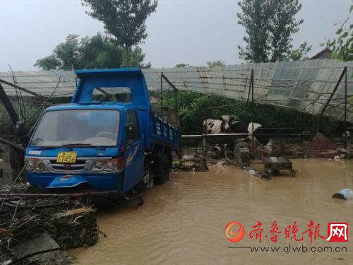 泰安北孙家庄村,部分农户家中进水,有村民家的狗和羊被淹死。村委调来挖掘机,将一处妨碍排水的管子挖开。村民介绍,凌晨一点左右,家中积水半米深,家具机器被水浸泡。齐鲁晚报记者 郝东智