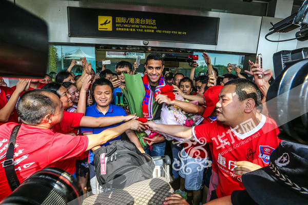 重庆力帆新援阿兰·卡尔德克抵渝 上百位球迷热情接机