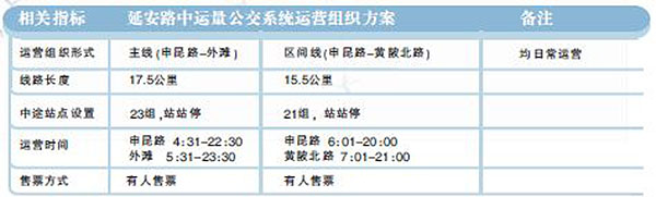 “延安路上开辟中运量专用道对交警压力比较大,所以我们计划让延安路沿途的其他公交把道路的资源让出来。现在的延安路上的公交专用道在规定时间内不得驶入其他车辆,而中运量专用道是24小时的。”上述负责人介绍,撤销原有公交车道意味着延安路上的中运量公交道能够充分发挥作用,“调整以后,其他公交通过接驳中运量站点来实现快速换乘,原先乘坐沿线公交的时间也会大大缩短。”