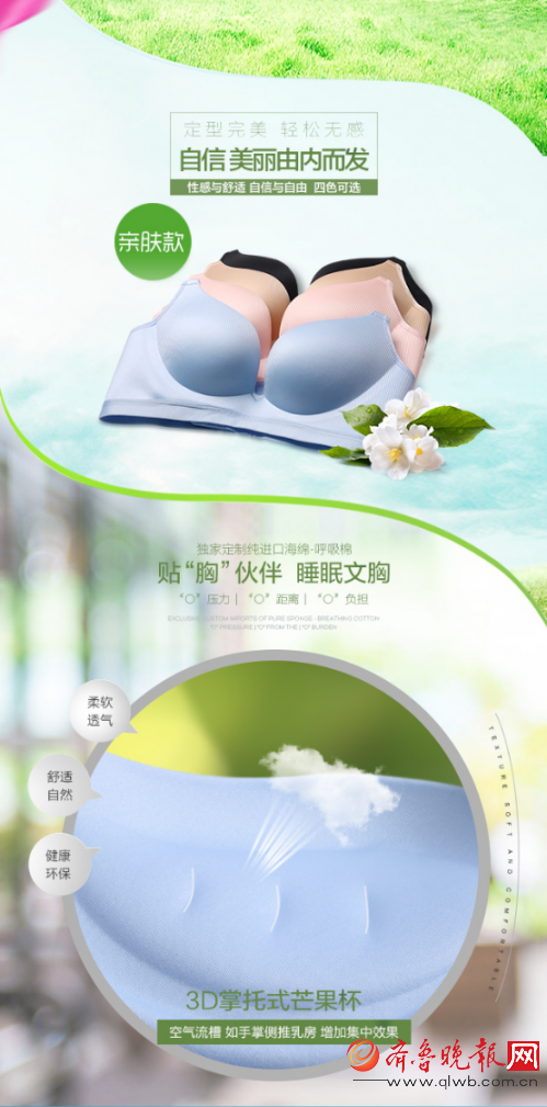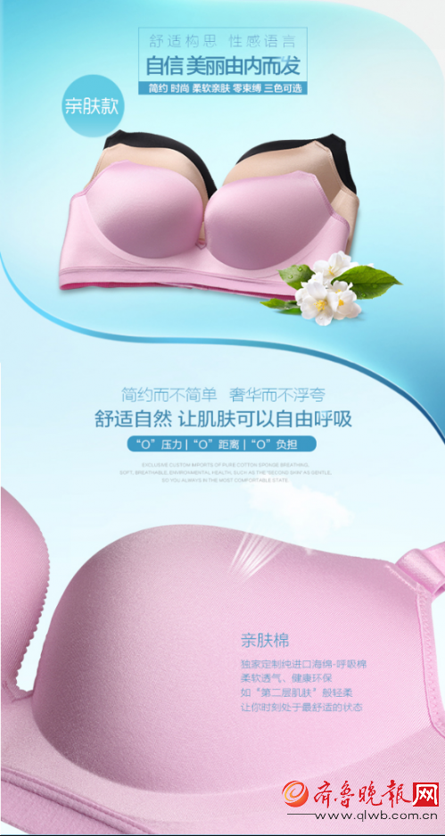 亲肤款的主要材料是亲肤棉,0甲醛的西班牙进口材质,面料和手感都是目前市场上罕有的,按人体360度精准设计,结合优质超细面料,经高温高压几次成型。真正实现了罩杯与胸部的完美贴合,无痕杯“O”压力、“O”距离、“O”负担,舒适自然,让肌肤可以自由呼吸,成为最健康的二十四小时的贴“胸”伙伴,堪称“睡眠文胸”行业的一次跨时代革命,开创无钢圈之最。