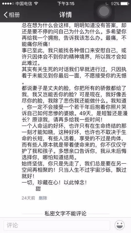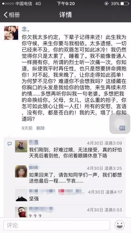 原标题:歼15飞行员牺牲后,妻子在朋友圈写下催泪长文