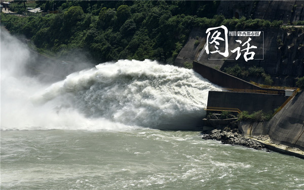 2016年7月26日22时56分,紫坪铺水库86米深的泄洪塔底,一扇300余吨重的工作闸门缓缓开启,白花花的水流咆哮着夺门而去,最高流速可达45米/秒,它们冲到了山体外的1#泄洪排砂洞洞口,形成滔天巨浪,汇入岷江奔腾而下。