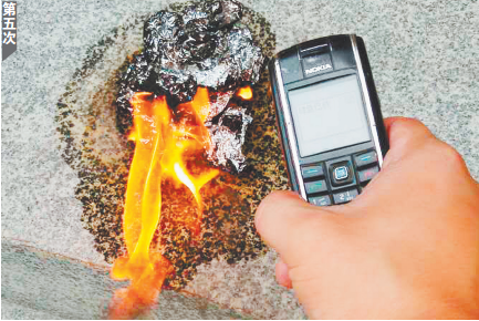 锡纸上洒汽油拨打手机能起火? 记者实验7次仅成功1次