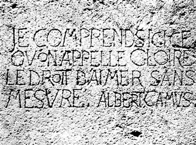 他去世后,阿尔及利亚友人在蒂帕札给他立了纪念碑,雕刻的铭文为: