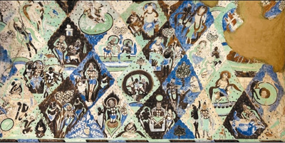 克孜尔石窟第17窟主室券顶趋于几何化的菱形格。