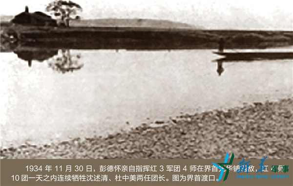 1934年11月30日,彭德怀亲自指挥红3军团4师在界首光华铺阻敌,红4师10团(陆军第38集团军某团前身)一天之内连续牺牲沈述清、杜中美两任团长。图为界首渡口。