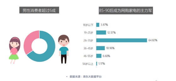 京东大数据家电消费者:85 90后男性独挡一面