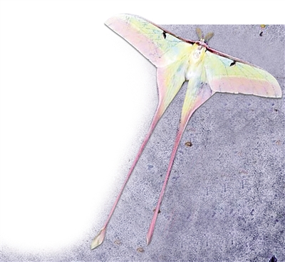 它到底是何方神圣?重庆自然博物馆动物学专家刘文萍介绍,“风筝蝶”学名叫红尾大蚕蛾,属于蛾类,躯体杏黄色,前胸前缘有紫红色横纹;前翅杏黄色,前缘紫红色,基部粉红色并有较长绒毛;后翅与前翅色泽基本相同,后角特别延长,达6—11厘米,是世界上尾突最长的蛾之一,与蝴蝶共同组成鳞翅目。