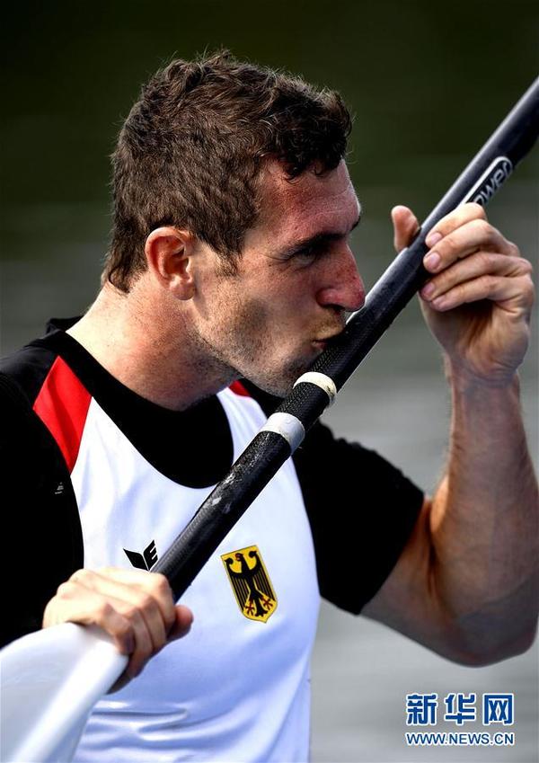 付出血汗艰辛,历经千锤百炼,我来到遥远的里约,只为心中不灭的奥运梦想……无论胜利与否,五环之下,没有过客,所有人都会留下光荣的姓名。当走下凝聚生命之挚爱的赛场,动情时刻,何不倾心一吻…… 这是8月16日,德国选手布伦德尔在男子单人划艇1000米冠军后亲吻划桨。 新华社记者王鹏摄