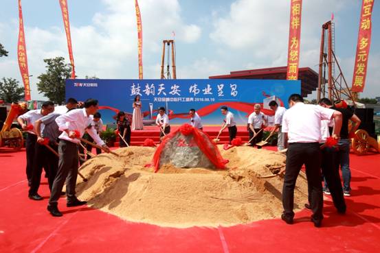 天安财险总裁高焕利、其他总裁室成员,与来自监管部门、中国(上海)自由贸易试验区陆家嘴片区、上海世博园后续发展领导小组的领导,金地商置、同济建筑设计院、中建五局华东公司和上海城地的主要管理人员等,一同出席了奠基典礼,共同为寓意“稳如泰山、勇于担当”的奠基石培土,并宣布“天安金融中心”项目正式开工。
