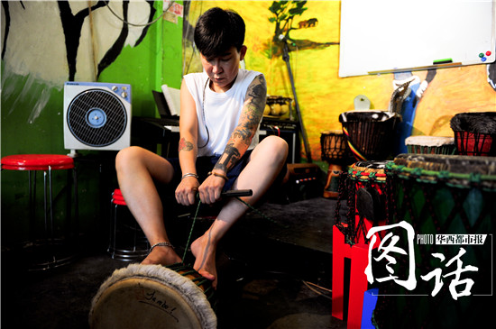 鼓队队员雅梅是一位文身师,平日里的工作需要极其细致和冷静,容不得半点差错。“每次打鼓我都觉得自己是另外一种状态,打得好不好不重要,就是感觉非常放松。”