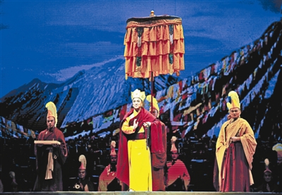 河北梆子《六世班禅》昨晚在梅兰芳大剧院上演,河北梆子演绎藏族历史人物,这也是第五届全国少数民族文艺会演中的一大亮点。该剧编剧孙德民昨天在接受北青报记者采访时说:“《六世班禅》从话剧到电视剧,现在又以河北梆子的形式演出,每一部戏都在重新创作时融入了当代观众的审美需求,因此,河北梆子《六世班禅》已经不再以简单的概念刻画这一人物,而是从佛教的理念和中华民族道德理念上,从刻画历史人物的内心世界这样的角度去重新诠释。”