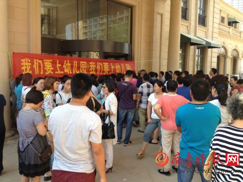 “我们小区自己的配套幼儿园,还得抽签才能上,要是抽不中,你让我们孩子去哪儿上学?”一名维权业主告诉记者,目前小区内一共有260多名孩子需要入园,如果除去抽中能入园的,还有百名孩子无学可上,所以全体业主决定统一行动,谁也不进摇号现场参加抽签。