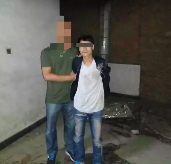 图为犯罪嫌疑人白某在老甘井子公园山顶一破房子内被抓获。