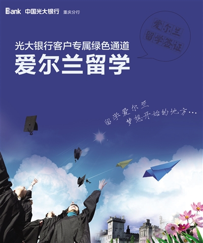 “爱尔兰留学存款冻结业务”是爱尔兰政府和光大银行签署战略合作协议后为光大银行客户开通的专属绿色通道。只需要留学生家庭在光大银行存入一笔资金(可以覆盖留学生在爱尔兰留学期间的学费和生活费),光大银行将该笔资金冻结后出具“爱尔兰留学存款冻结证明”,留学生持“爱尔兰留学存款冻结证明”即可办理签证,并且签证通过率更高!留学生家庭轻松解决了6个月留学保证金的难题。