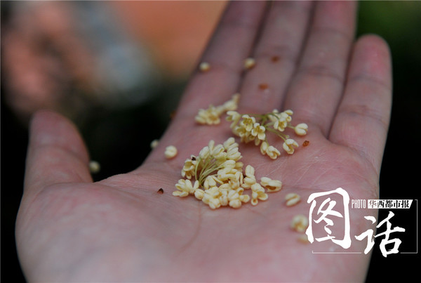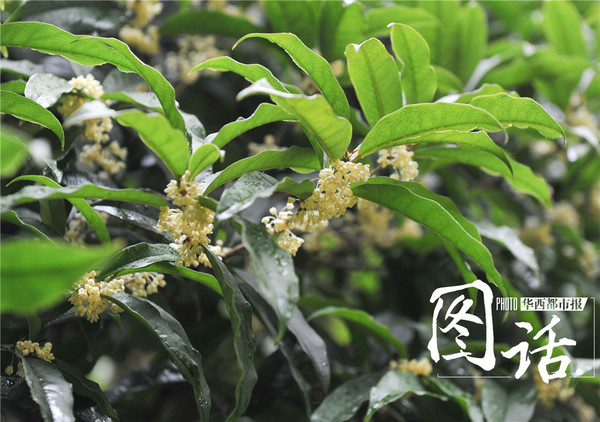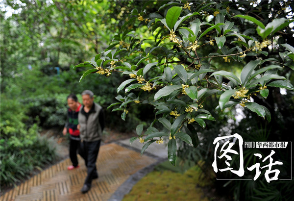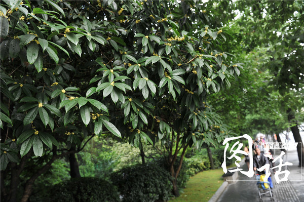 “八月桂花遍地开。”正值农历八月,经过一场夜雨的洗礼,成都街头桂花盛放,带给市民初秋的惊喜。成都人民公园外,雨后初晴的街道上浸润着桂花的幽香,沁人心脾,深吸一口,让人顿觉神清气爽。你造吗?桂花树经过长时间的自然生长和人工培育,已演化出很多品种,主要是四个:丹桂、金桂、银桂和四季桂。其中丹桂、金桂和银桂都是农历八月开花,被统称为八月桂。丹桂花色以橙黄、橙红和朱红色为主,气味浓郁;金桂花色主要以黄色为主;银桂花色以白色为主,呈纯白、乳白和黄白色。四季桂别名为月月桂,花朵颜色稍白或淡黄,夏秋两季芳香浓郁,春冬
