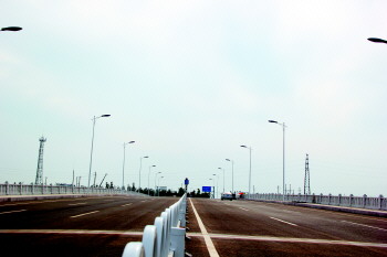 作为广利港及临港产业区疏港和集港运力的倍增器,广利河大桥的建设从设计规划阶段就引起了东营经济技术开发区管委会的高度重视,并对大桥建设确立了“高起点、高标准、高质量”的要求。工程启动之后,开发区管委会统筹各部门,仅用60天时间,就完成了从项目启动到施工招标的16项审批手续。随后,土地回收和拆迁工作捷报频传,为工程顺利建设夯实了基础。