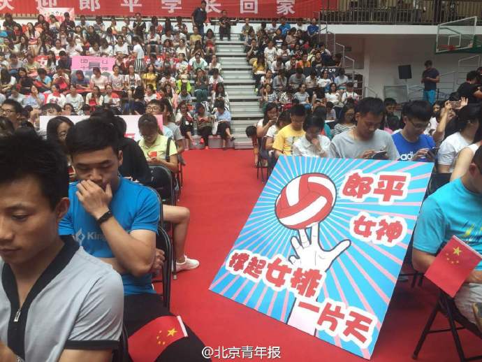 1985年,“铁榔头”退役进入北京师范大学外语系攻读英语专业,会场上,北师大学生高呼“外文学姐,国民女神”,郎平笑答“不是教练是女神就能拿冠军的”,她还感恩母校老师们非常照顾当年这位26岁的高龄学生,“老师们的支持和帮助,让我能够说一口流利的英语,为国际郎打下基础。”2015年,郎平新添了另一重身份——北师大郎平体育文化与政策研究中心主任,“郎学长”变成了“郎主任”、“郎老师”。(北青报记者刘旭张昆龙)
