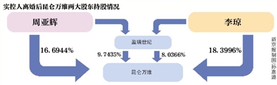 本次股份分割过户前,李琼通过盈瑞世纪间接持有昆仑万维2004万股,占股份总额的1.7780%。公告中显示,股权分割后,周亚辉的合计持股比例为26.4379%,李琼的合计持股比例为26.4361%。