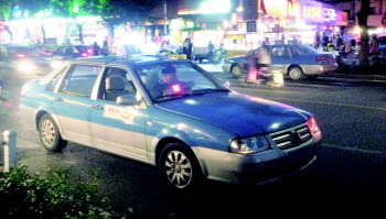 胶州路上,出租车在路边等活儿。 本报记者 段学虎 摄