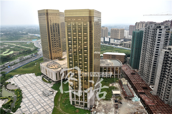 成都彭州现“土豪金”建筑 已停工数月