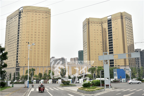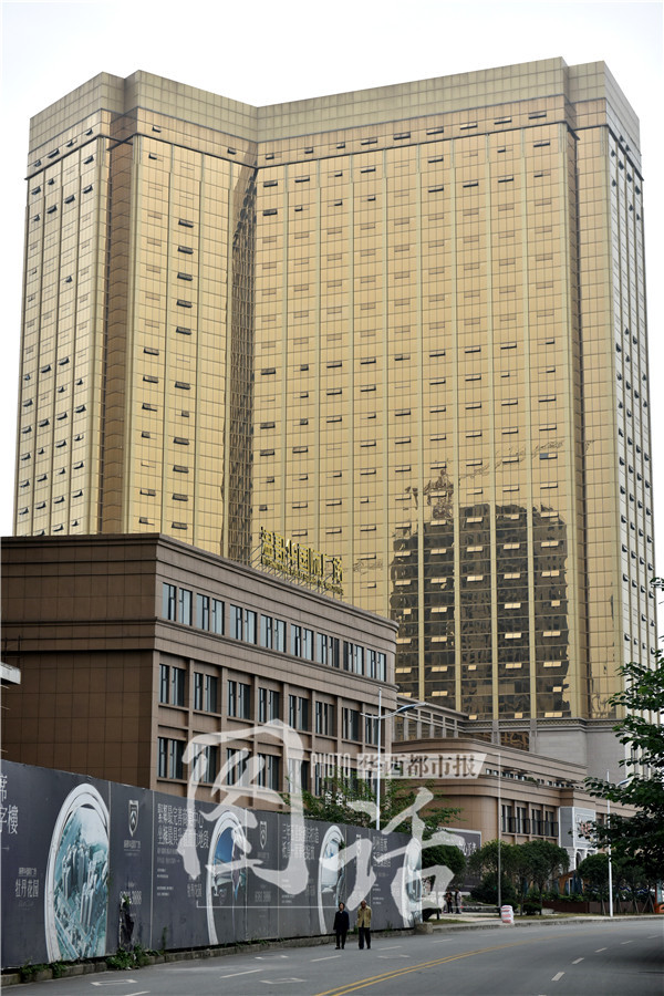 在引领一时风潮的“土豪金”手机带动下,各种“土豪金”颜色的商品大卖。而国内土豪金色的建筑也是一时风起,在成都彭州市区记者发现两栋金灿灿的“土豪金”建筑,路人经过都纷纷拿起手机拍照。这是一幢修建中的五星级酒店和写字楼,资料显示该楼已于2013年封顶,外墙装修也已基本完成,但据记者了解目前整体工程已停工数月。华西都市报客户端记者 吴小川摄影报道