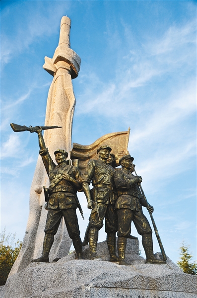 商州区金凤山上红军广场的雕塑肃穆而庄严