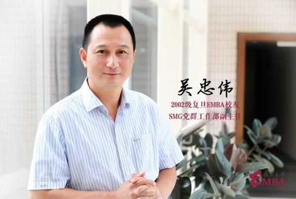 2002年,吴忠伟进入复旦EMBA传媒班学习。2011年,SMG集团改制,吴忠伟开始负责集团企业文化的建设和品牌管理开发。“通过在复旦EMBA的学习,我对媒体产业化尤其是传媒企业管理等方面都有了进一步的了解。如今看来,当时的学习为之后的传媒转型,应对‘新媒体’的崛起、应对媒体如何进行市场化改革等都打下了良好的基础。”