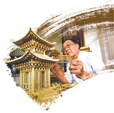 在搭建复杂的建筑作品之前,徐艳丰都会先按照实物的图片,在纸上绘制一个平面图。“平面图看似简易,却是最难、最关键的一步。”徐艳丰说,确定了主体结构中仰角和明柱的数量和位置,只要这个不出错,作品整体的结构就算定了。