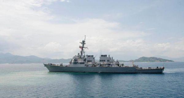 美国海军导弹驱逐舰“约翰·S·麦凯恩”号2日驶入金兰湾。 参考消息 图