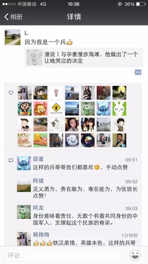 9月上旬,中国军网微信公众号发布一篇题为《与孕妻漫步海滩,他做出了一个让她哭泣的决定》的漫画图文,真实再现了张晓东救人的场景。稿件发布后,很快引起关注,网友留言多达数百条并纷纷转发,这条信息也“霸屏”了事发当地军民的朋友圈。