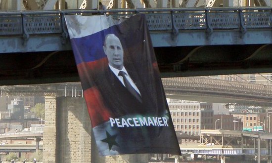 普京64岁生日,纽约大桥现神秘贺寿海报(图)